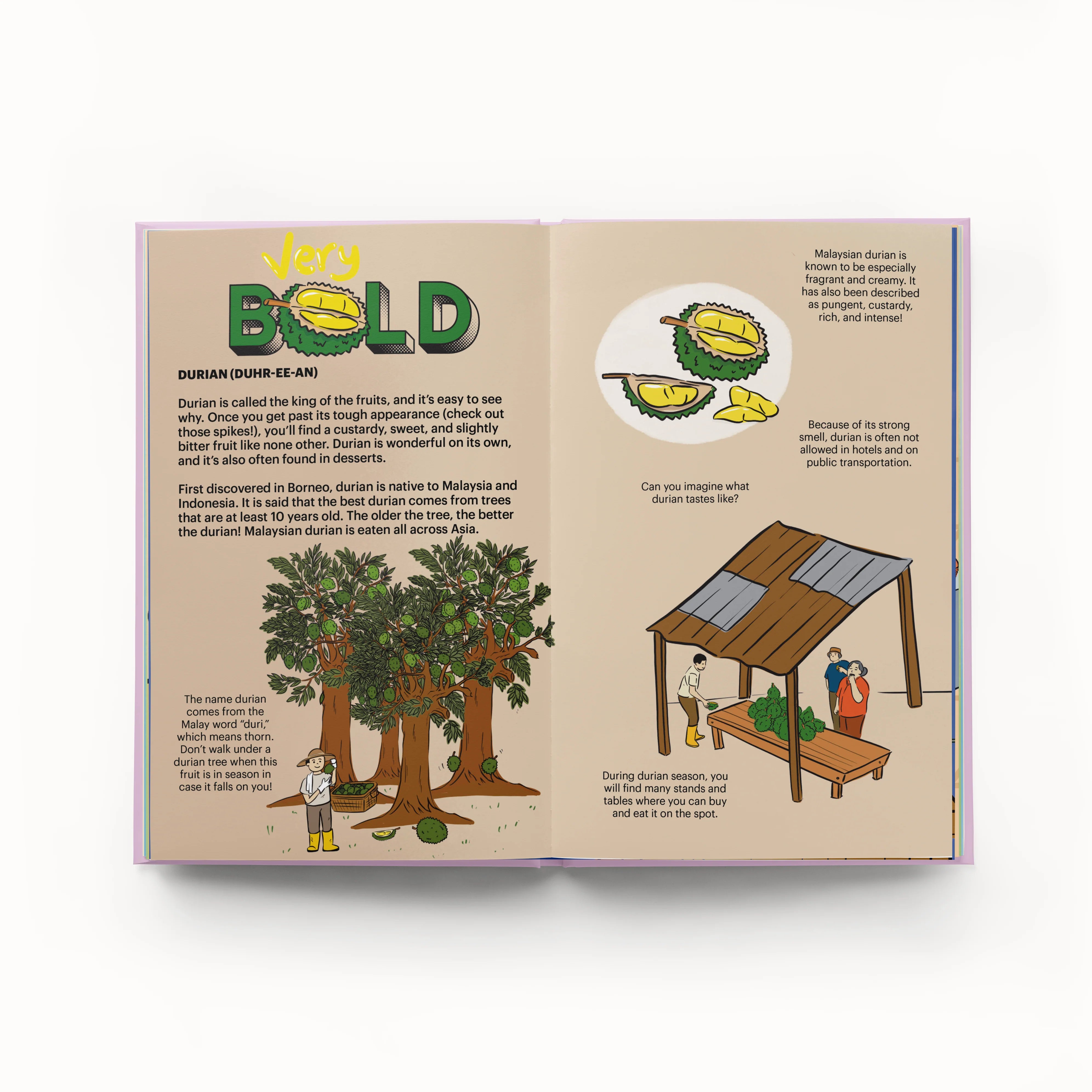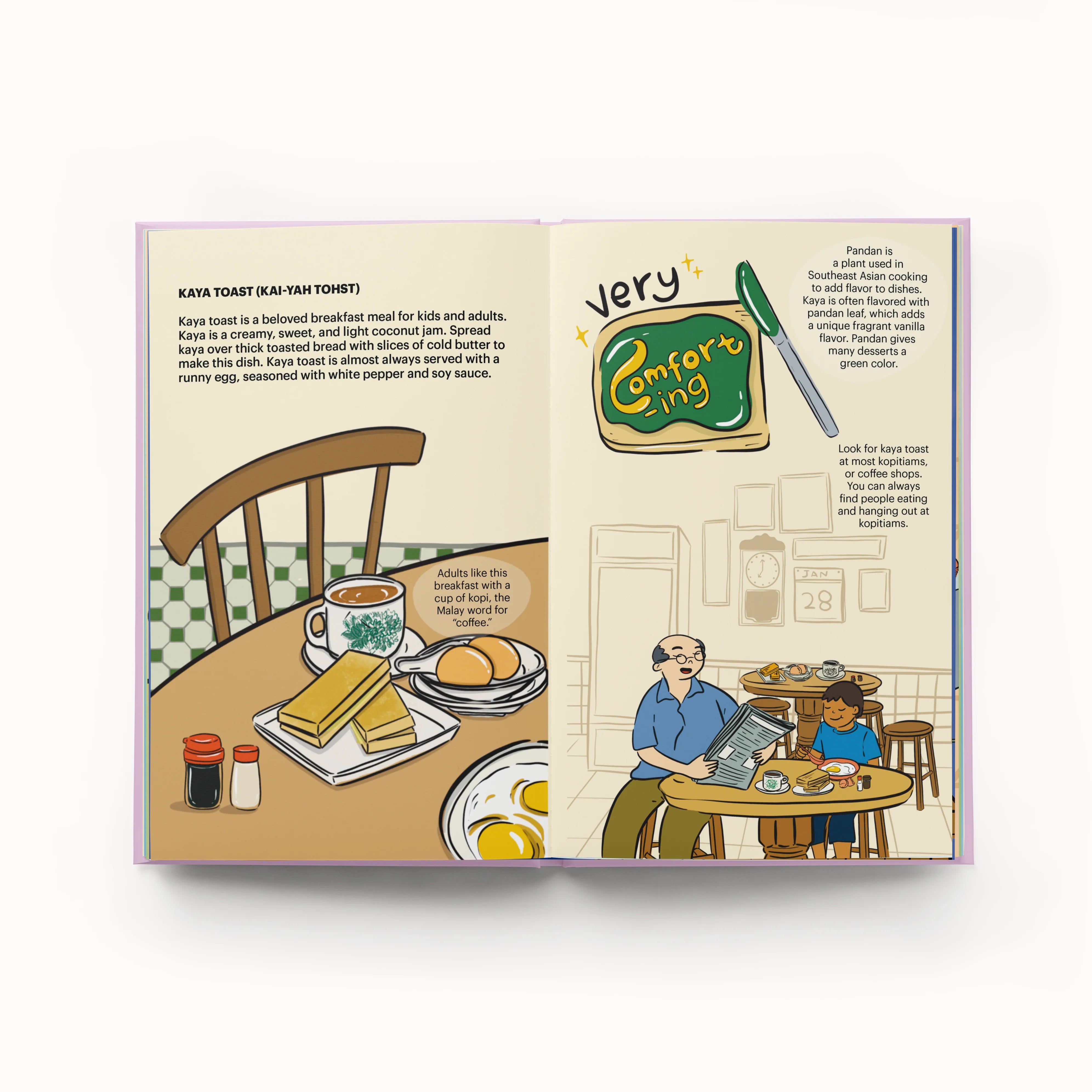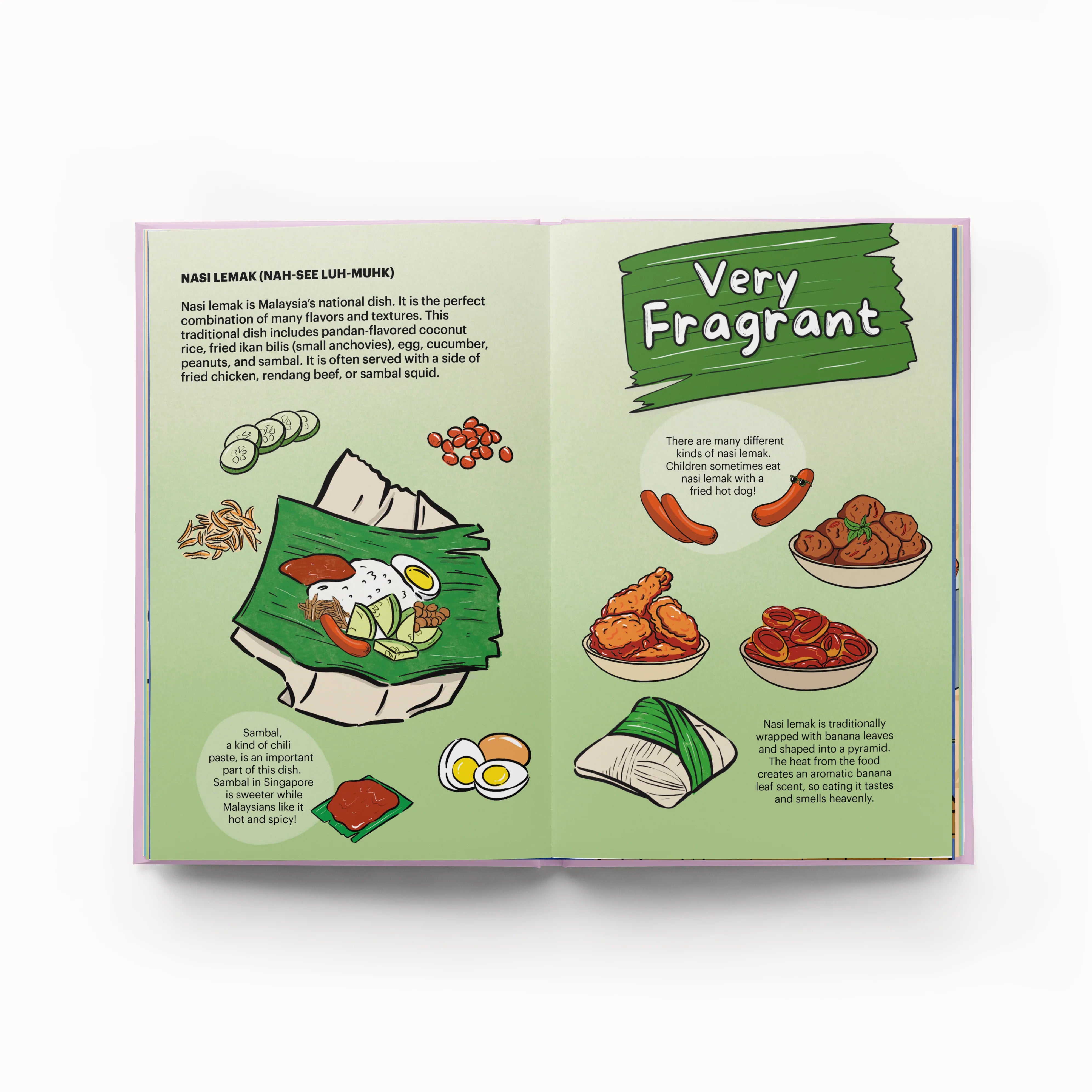 Explore the delicious world of Malaysian and Singaporean food! A Very Asian Guide to Malaysian and Singaporean Food introduces little readers to classic and modern dishes and provides fun facts about the foods and culture of Malaysia and Singapore. Learn about the prized bold fruit durian or the many variations of the rich noodle soup laksa. Author, Shuli de la Fuente-Lau, and illustrator, Ann Jaafar, take readers on a journey to explore a cuisine that is an intersection of many cultures, histories and a shared passion for food!