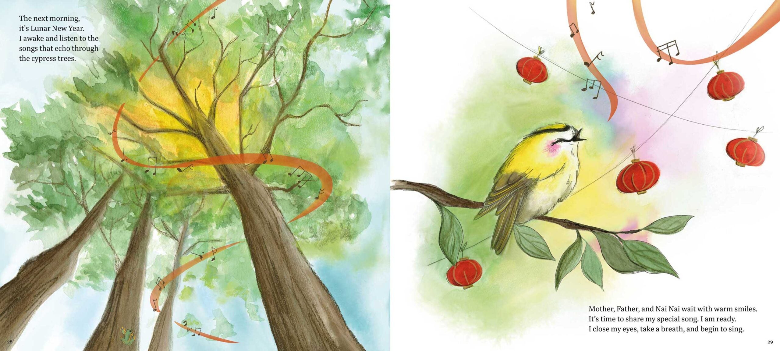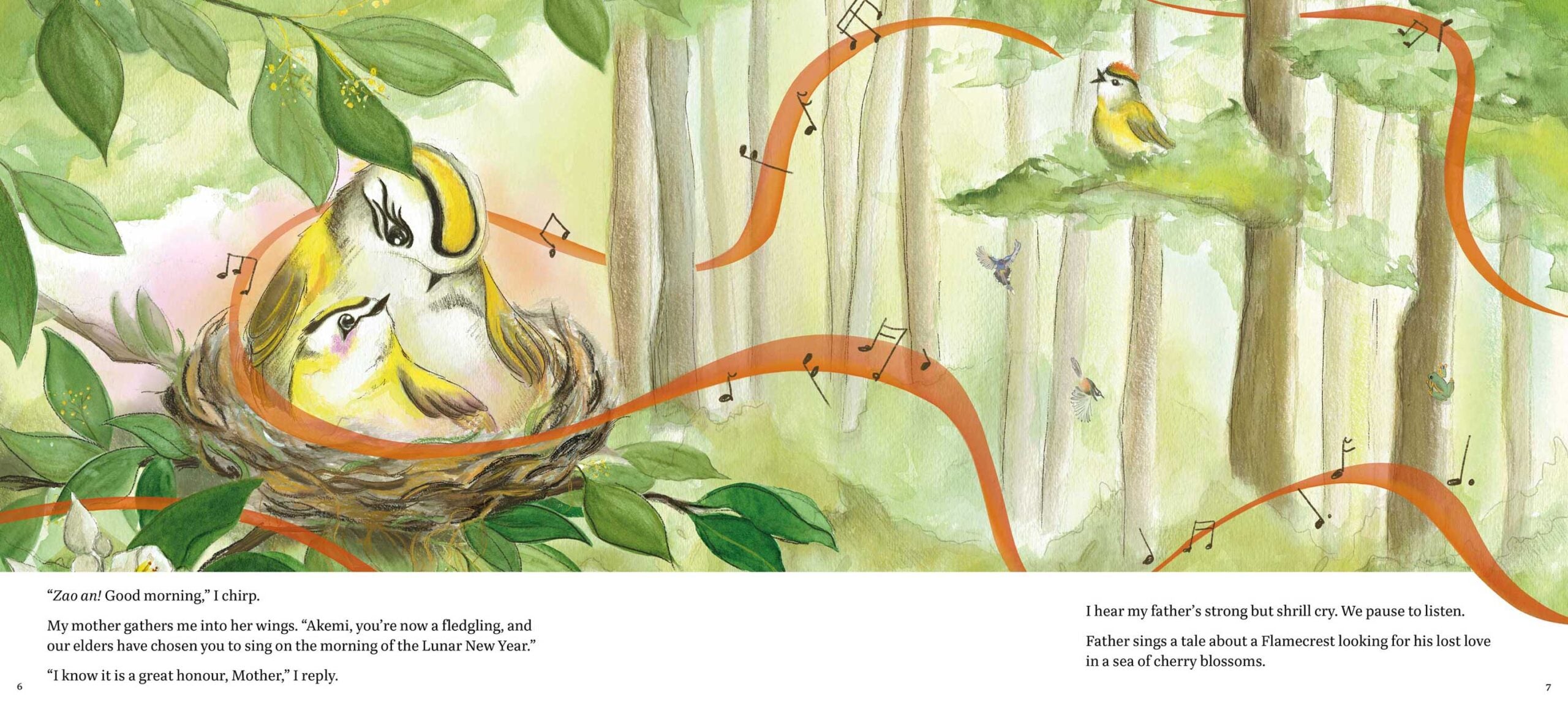 In the Alishan forest of Taiwan, flamecrest birds sing their personal songs of love, home, memory, and hope. This year, Akemi, a young flamecrest bird, has been selected to sing her special song on the Lunar New Year. But Akemi is unable to create her song. Encouraged by her mother, Akemi sets off on a journey to learn more about herself. She travels through Taiwan’s beautiful landscape, from towering mountain peaks to narrow gorges and mirrored lakes. With each adventure, she discovers that her inner strength is reflected in the beauty of the natural environment, and she finally has her song … one of confidence in herself, love for community, and appreciation for the beautiful world in which she lives.