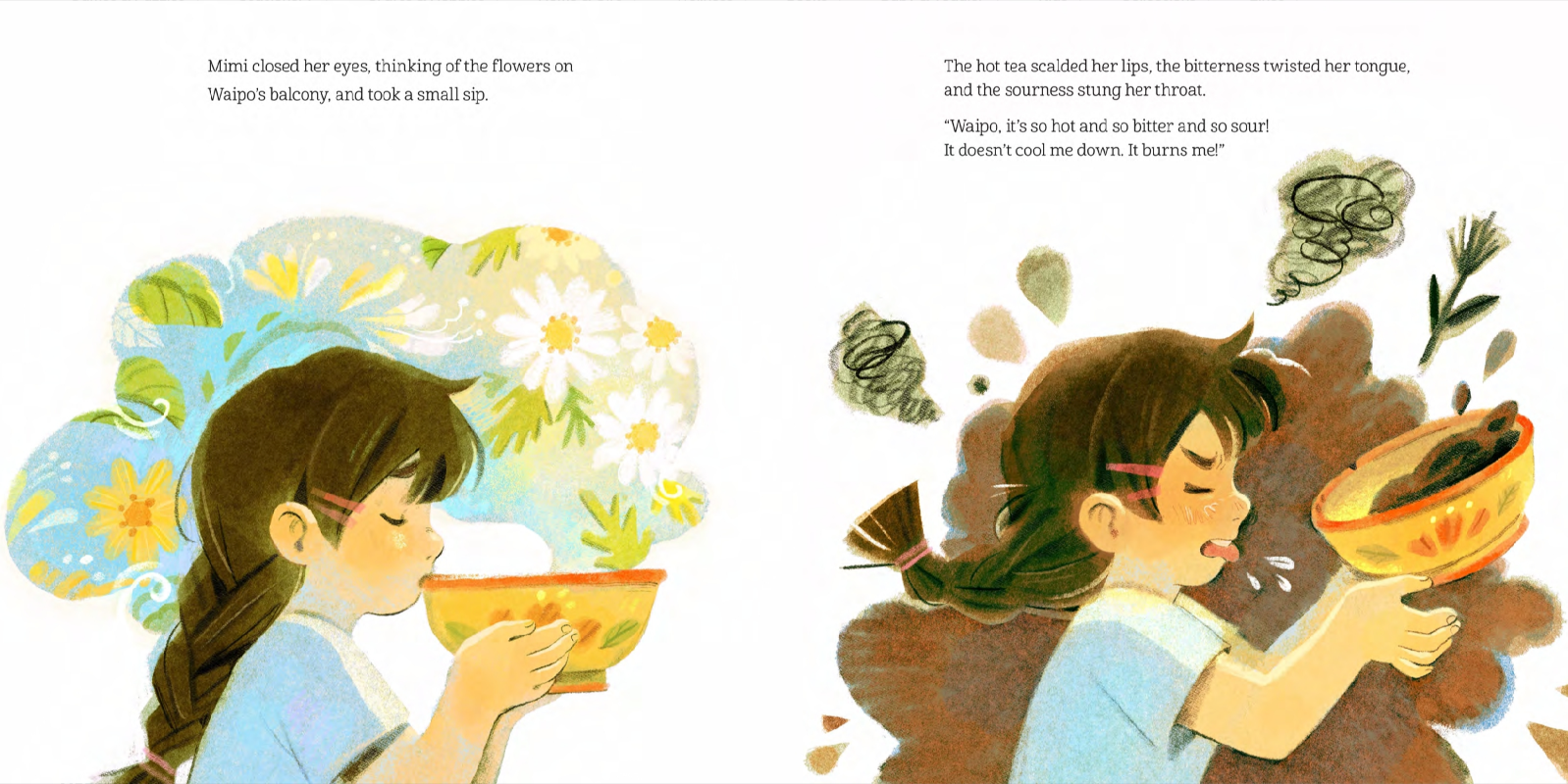 Mimi's Waipo loves liangcha, but Mimi thinks her grandmother's favorite tea is just too bitter.