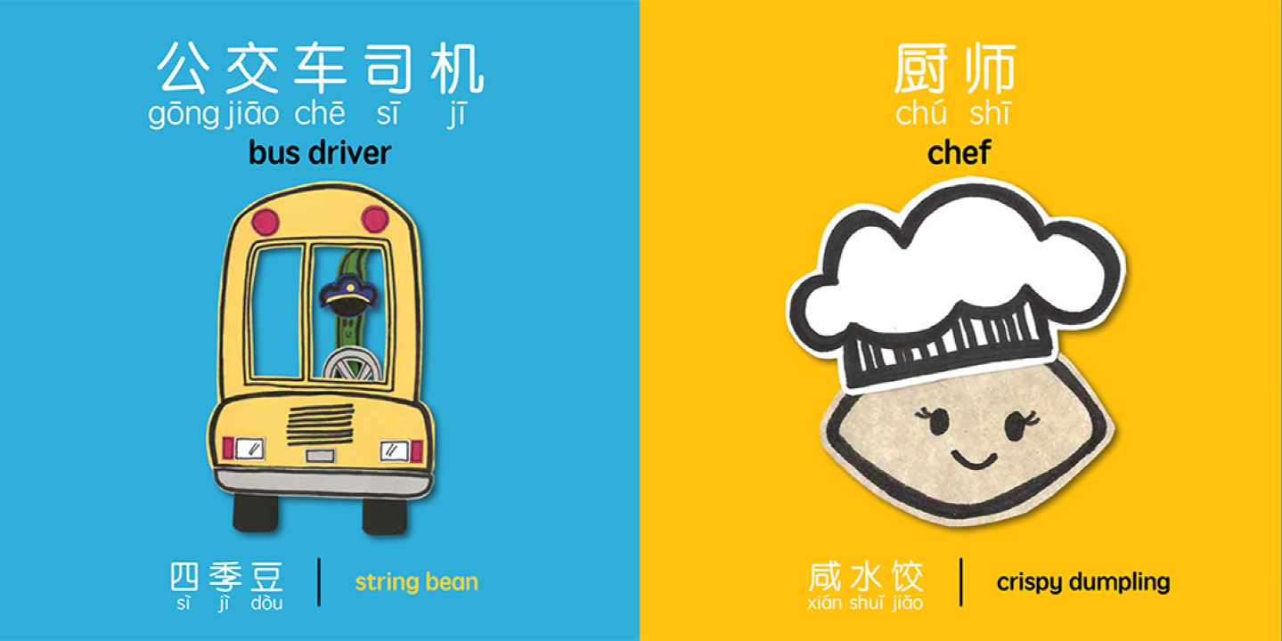 For families looking for a fun way to teach children about the community workers in their neighborhood, this book creatively uses common Asian foods to not only captures their bitty babe's attention to teach them career words in two languages, but also celebrate Chinese culture!