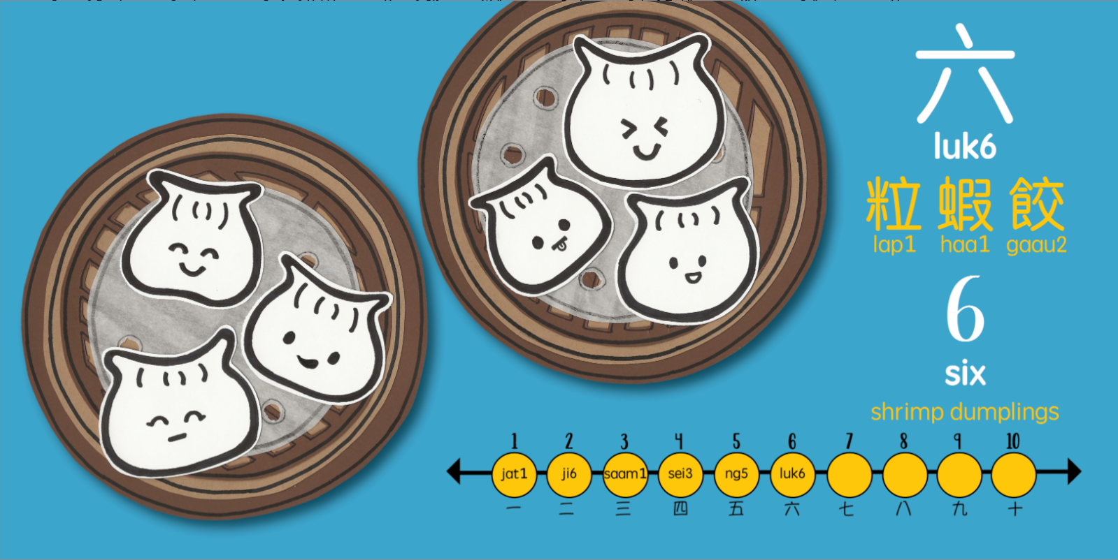 Our counting book squeezes in extra learning opportunities and skills, such as encouraging one-to-one correspondence while practicing counting on a numberline, extra fun facts about Chinese language, and a non-fiction page with real-life pictures of dim sum items in the picture glossary.