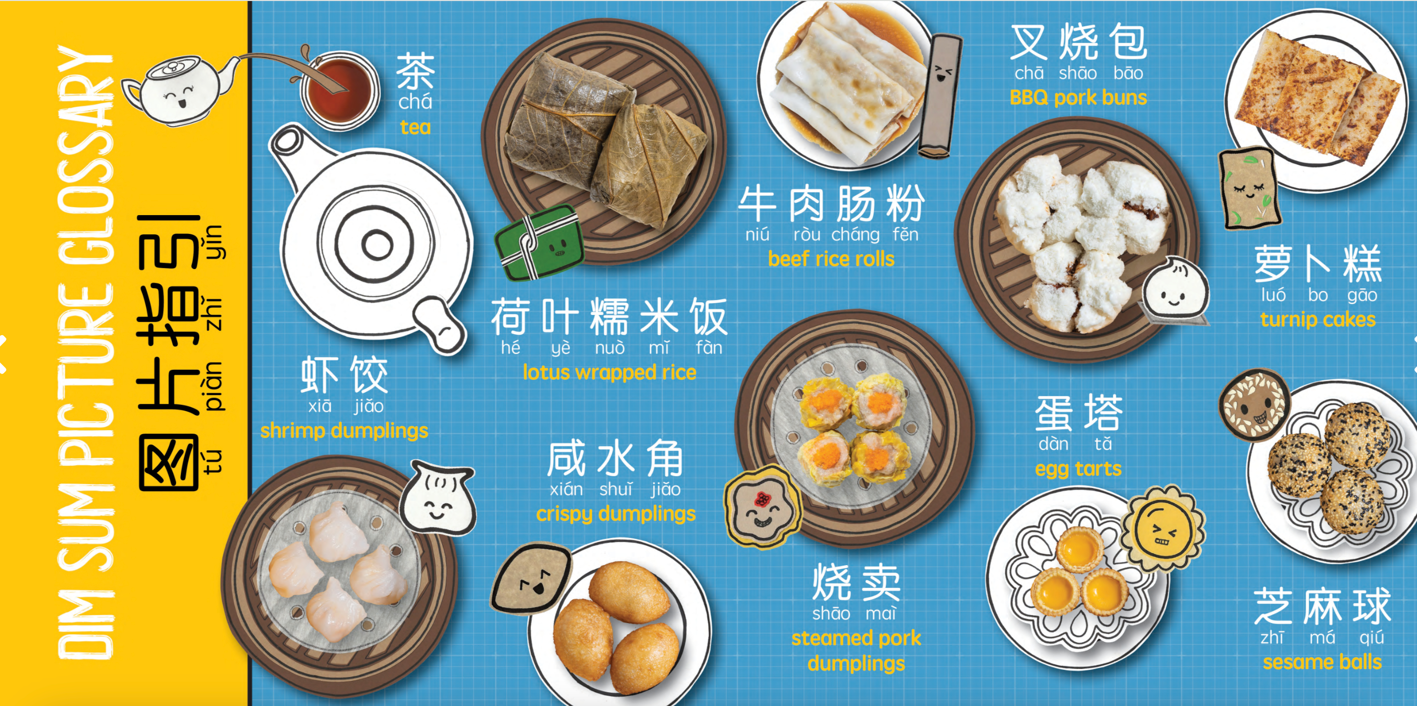 Dim sum is everyone's favorite late-morning-to-lunchtime meal shared between family and friends. Our counting book utilizes dim sum's little dishes, accompanied by a pot of tea, as the subject for children to practice their counting. Children and adults alike will be delighted to find their favorite snacks included in the book as they turn each page.