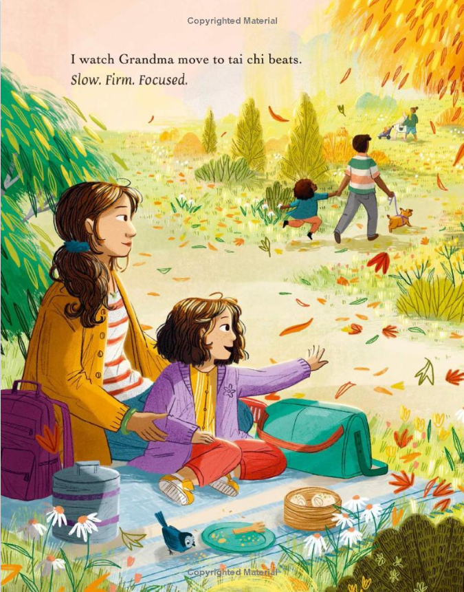 Dumplings dance in water like Grandma moves through tai chi beats: slow, firm, focused. When the autumn leaves are tumbling, there’s nothing better than coming home from the park and helping Grandma roll, fill, and pinch ingots of meat and cabbage. “Dancing dumplings for my one and only,” Grandma says, scooping them up for her granddaughter. But as the season grows colder, Grandma says she can’t make dumplings for her one and only, not today. The child watches her grandmother wheeze and sneeze in bed, and although her heart da-dubs with fear, she lights incense and keeps her company until the day her grandmother is well enough to dance again—made stronger and healthier by the dumplings her granddaughter now cooks for her. Sumptuously and scrumptiously illustrated by Natelle Quek, Eva Wong Nava’s story captures the wonderful bond between grandchild and grandparent—and how powerful and healing the act of sharing food can be. An author’s note deepens the message of the importance of cultural foods in our relationships to both our heritage and loved ones.