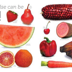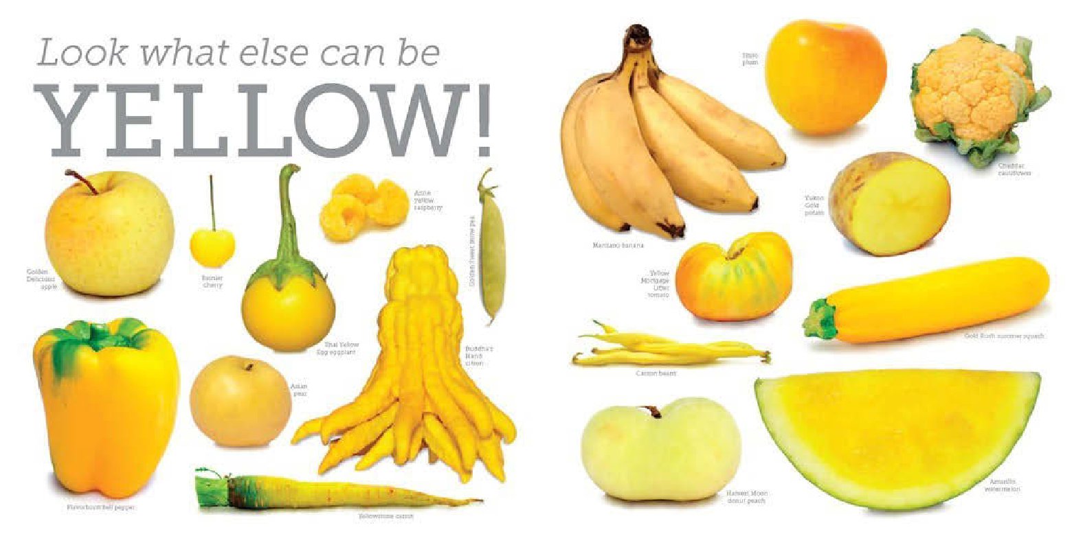 With a combination of unusual foods and a kaleidoscope of colors, this concept book shows that not all foods have to look the same way. A banana can be red, broccoli can be purple, and cherries can be yellow and still taste just as delicious.