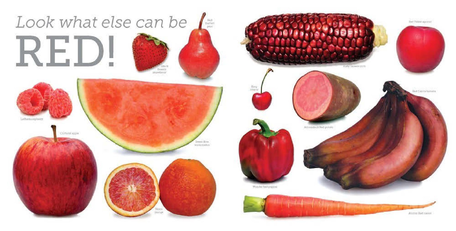 Inspire picky eaters of all ages with Edible Colors, a book that shows how familiar tasty foods can look different, and new ones can can be similar to ones they've already tried.