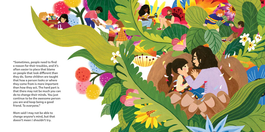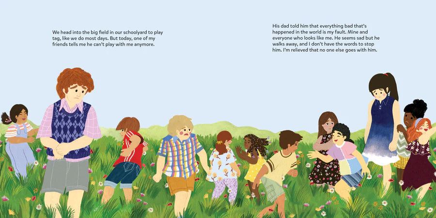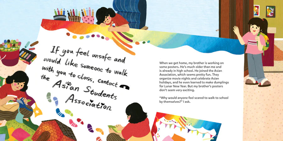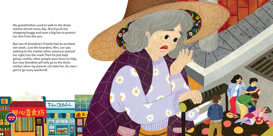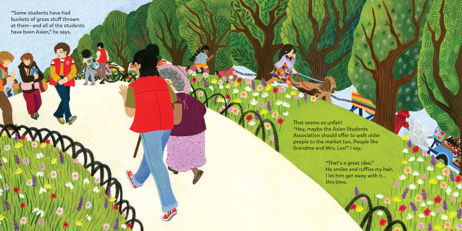 A little girl hears that her grandma’s friend, Mrs. Lee, was pushed on her way to the Asian market. Then she learns that Asian students at her brother’s school are afraid to walk to class, and she realizes something very wrong is happening to her community. How can life be so unfair? With her mom’s support and the help of her friends, the little girl sets out to do something kind for Mrs. Lee.