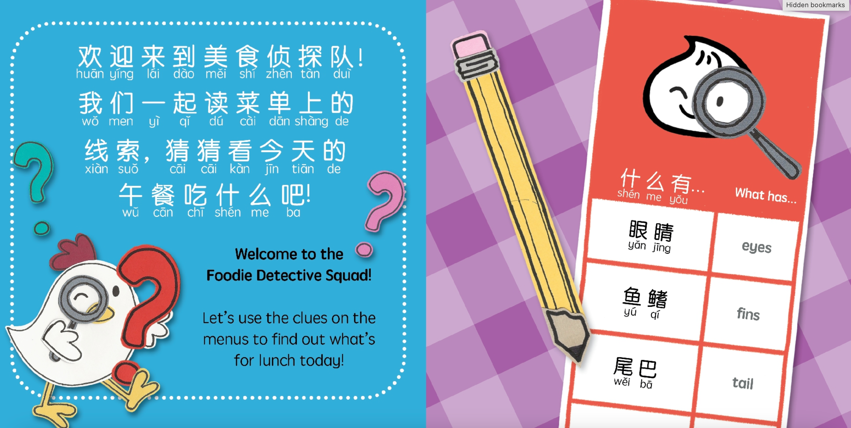 Foodie Detectives squeezes in lots of extra learning opportunities and skills, such as practicing using questions and making predictions or guesses, utilizing adjectives and descriptive phrases, and critical thinking in English and Chinese.