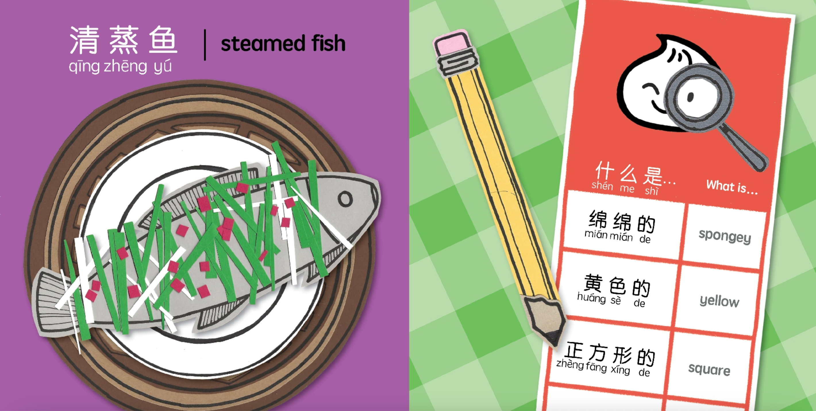 Interactive books for children are so much fun. Foodie Detectives introduces children to various steamed Asian snacks and dishes in both English and Chinese through a guessing game. Children and adults alike will be delighted to read the clues on the menus and try to guess which steamed food will appear when they turn the page. The book is full of eye-catching and vibrant pictures that improve observation skills, build vocabulary, and encourage reading.