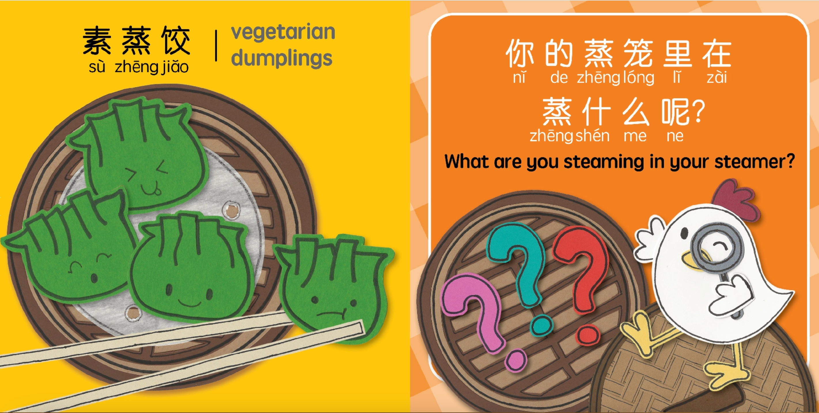 For families looking for an interactive reading for their bitty babes, this bilingual book creatively uses a guessing game format to engage readers in figuring out which favorite food is being steamed in the steamer, all while highlighting Chinese culture!