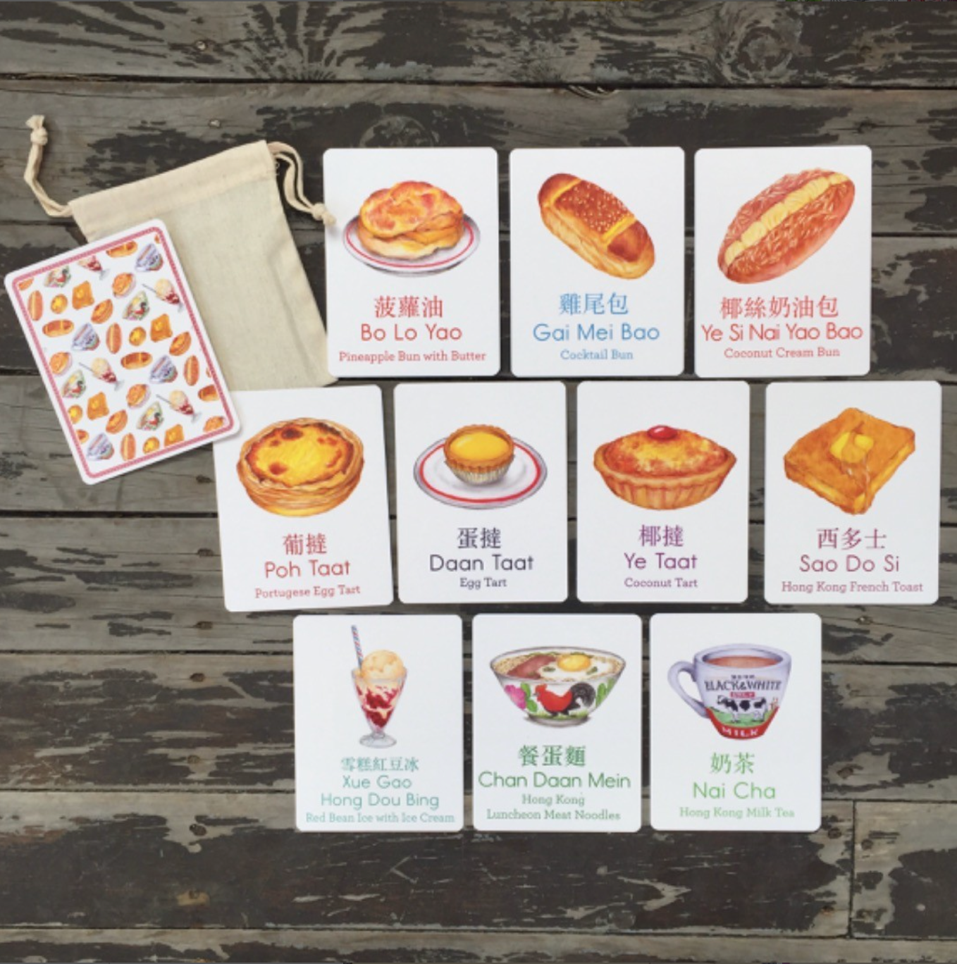 Each deck contains 10 stunning cards, featuring classic Hong Kong cafe favourites. Every card includes: