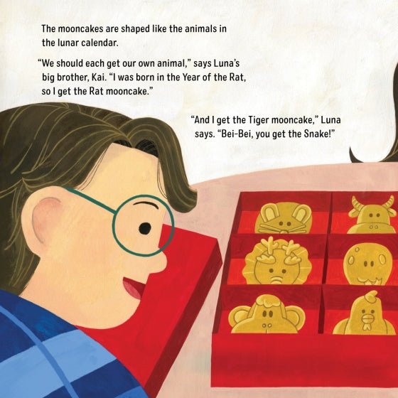 Someone in the family is stealing mooncakes! Could it be big brother Kai? Luna’s other brother Benji? One of the cousins? Or maybe a grown-up? Detectives Luna and Mina search for clues and eliminate suspects during the Mid-Autumn Festival celebration. Can they catch the thief?