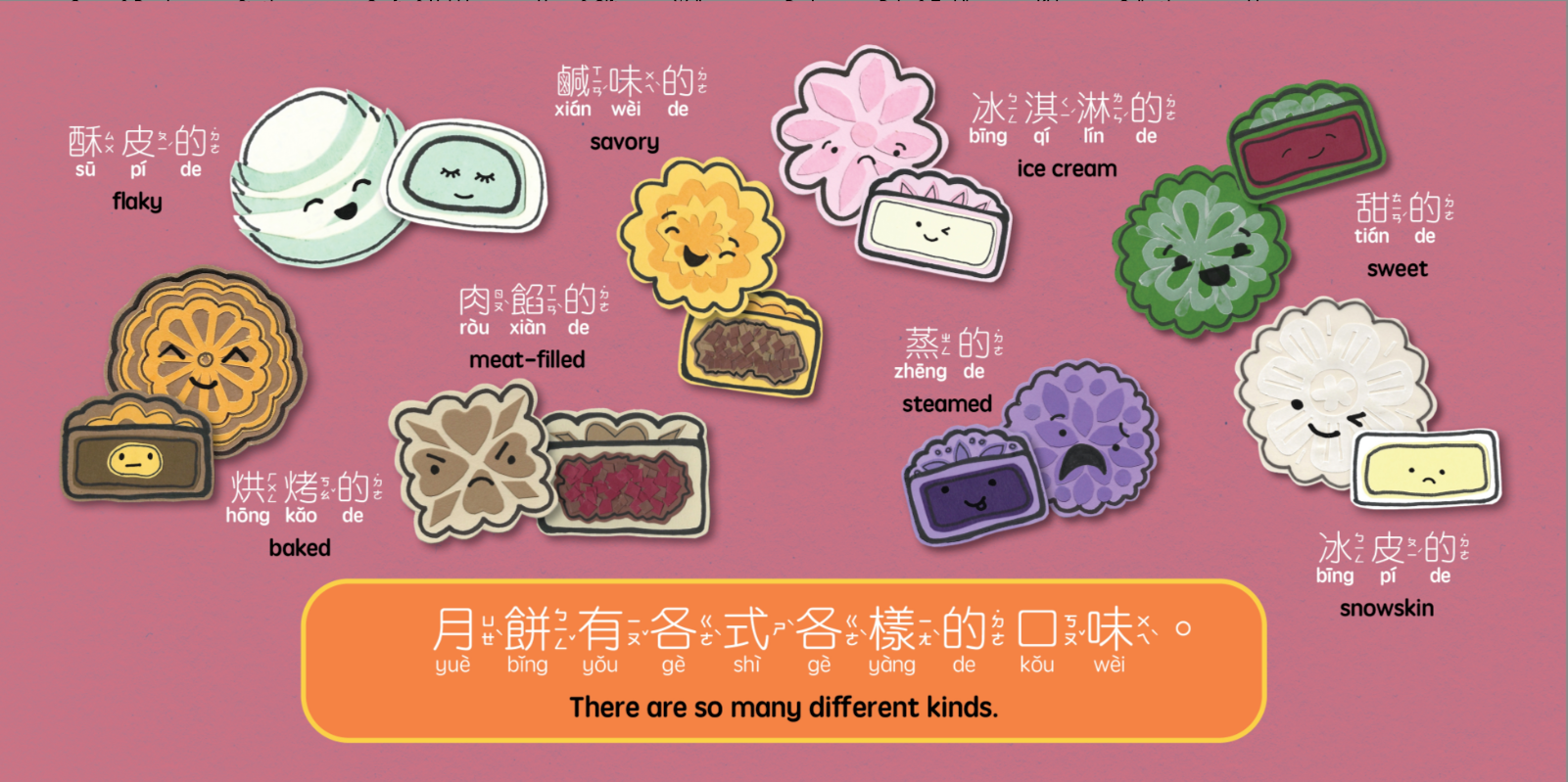 Mooncakes is a bilingual English and Mandarin Chinese book that teaches you everything there is to know about this scrumptious treat. Inspire the culinary adventurer inside each and every one of you and not only learn about the various types of mooncakes, including the different fillings, skins, and shapes, but also how to make them. Most importantly, read about why mooncakes are so essential to this holiday.