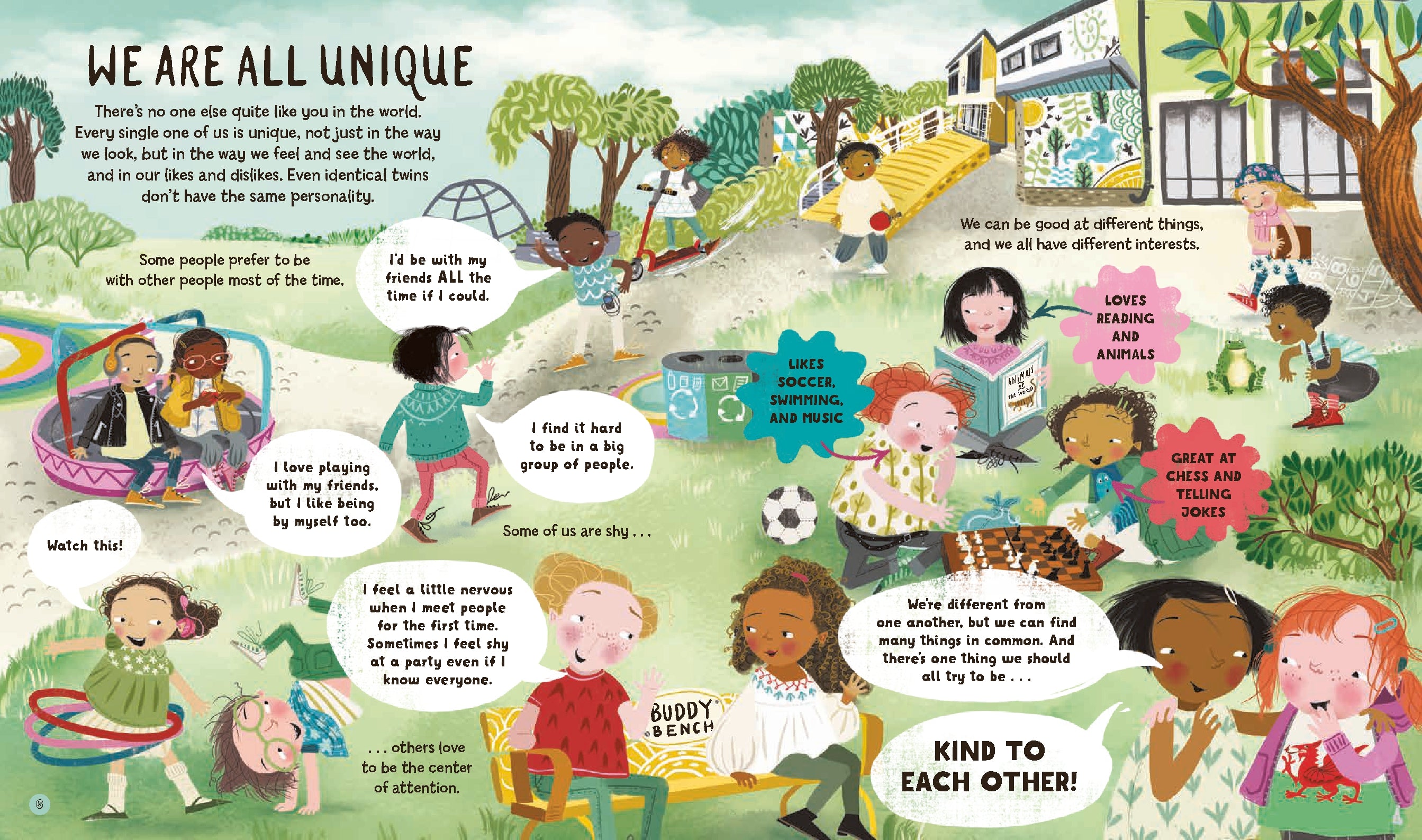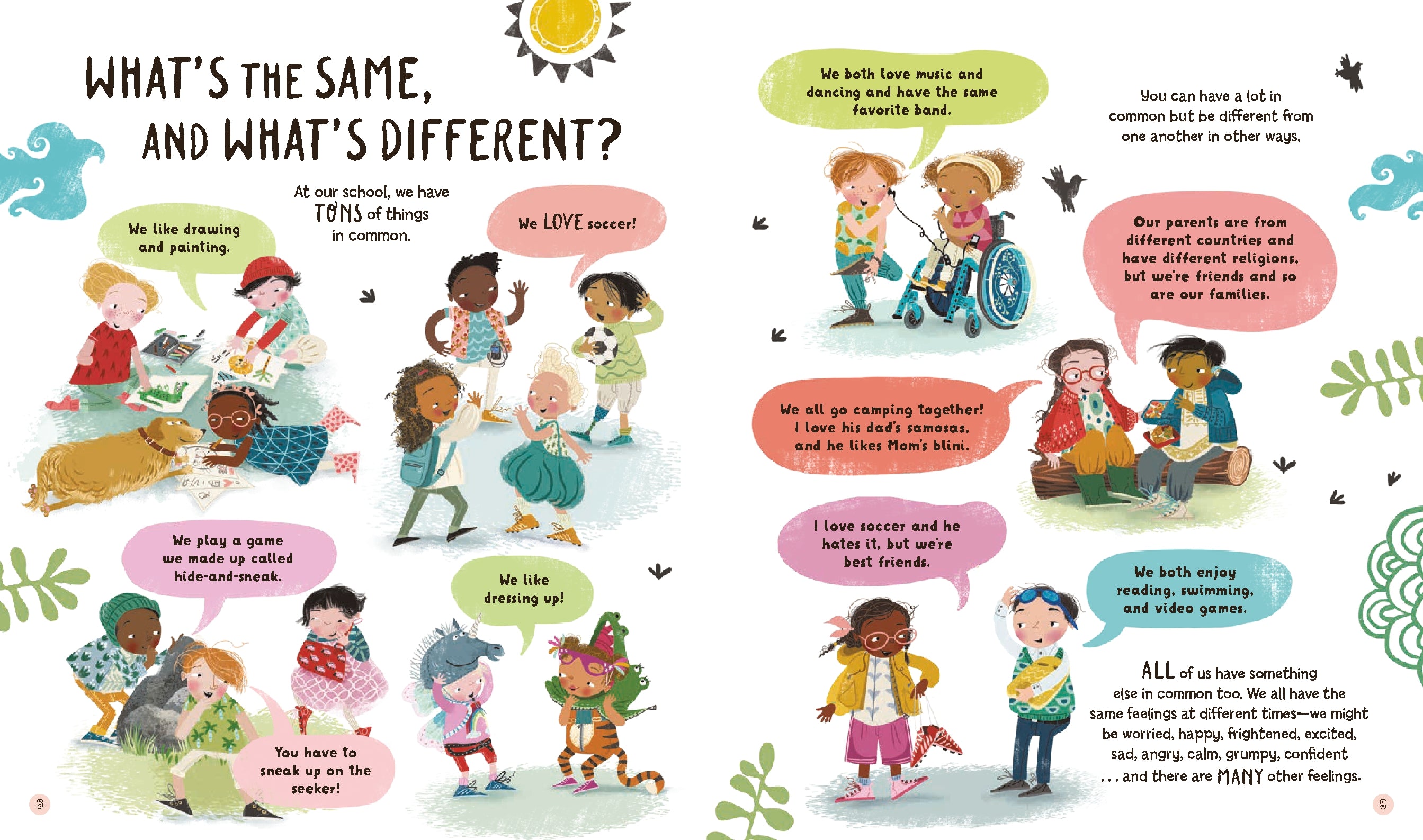 Meet the children from one school, and their teachers, parents, and guardians. They have different kinds of families, likes and dislikes, cultures, ethnicities, abilities and disabilities. . . and A LOT in common!